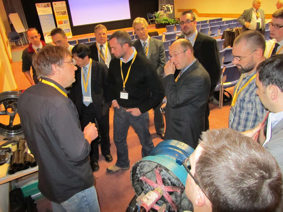 Left, Steve Thomas outlines the wet lay process involved in carbon motorbike wheel manufacture at the SWCG. The programme, running between April 2010 and December 2012, aims to promote the use of composite technology among small businesses in the West by inviting industry experts to share their wealth of knowledge.