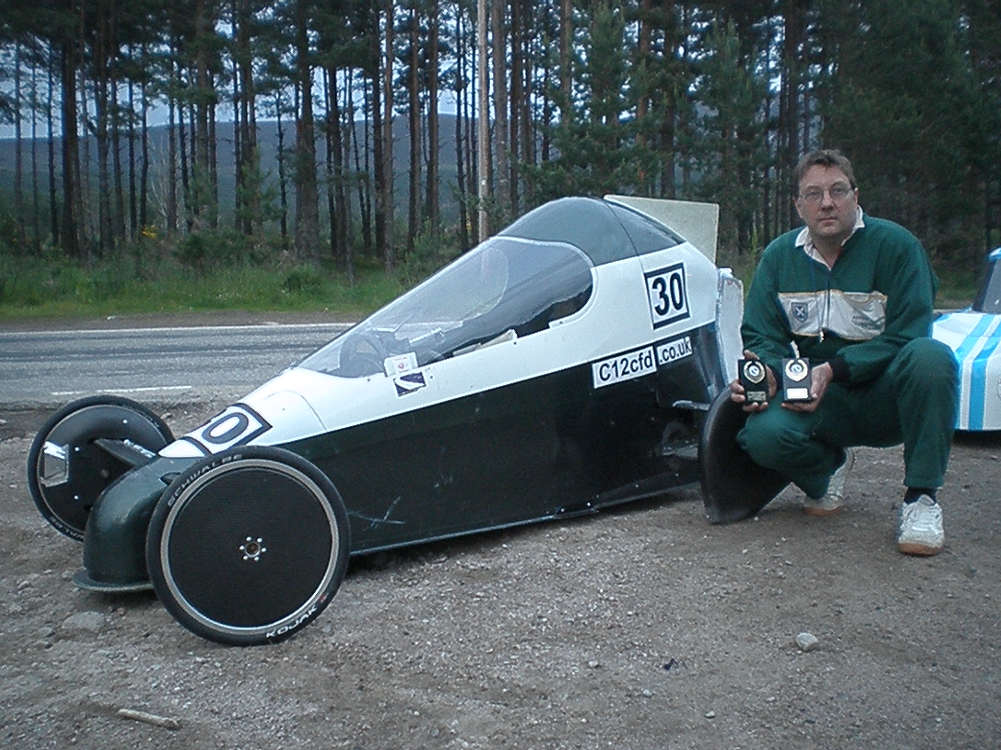 On 23rd and 24th July, the C12 Gravity Racer took part in the Cairngorm Extreme Soapbox challenge. This involves a challenging two mile course down the Ski Road, including a very tricky right/left bend near the start, sweeping curves and an overall gradient of 1:14. 32 'Carties' and soapboxes took part, including a works team from Bentley, and C12 proved the decisive winner, leading all its heats and clocking a new unofficial UK speed record of 64 mph on its penultimate run. Altogether C12 collected three trophies, for overall winner, for fastest time (the 'Flying Scotsman' award) and for the furthest distance travelled to take part in the event. It was a splendid weekend, and we plan to return next year!